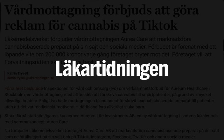Vårdmottagning förbjuds att göra reklam för cannabis på Tiktok 16 februari 202410 oktober 2023 Vårdmottagning förbjuds att göra reklam för cannabis på Tiktok