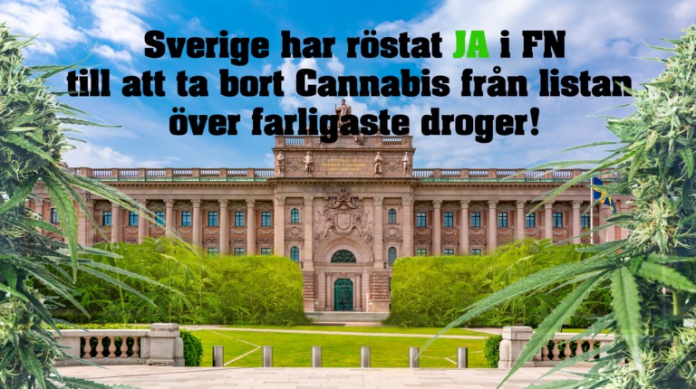 Den internationella händelse som förmodligen påverkar Sverige allra mest är FN-beslutet att ta bort cannabis från listan över de allra tyngsta drogerna. Det kan ses som ett erkännande att cannabis har medicinska användningsområden. Glädjande nog var Sverige ett av de länder som röstade för den nya klassificeringen.