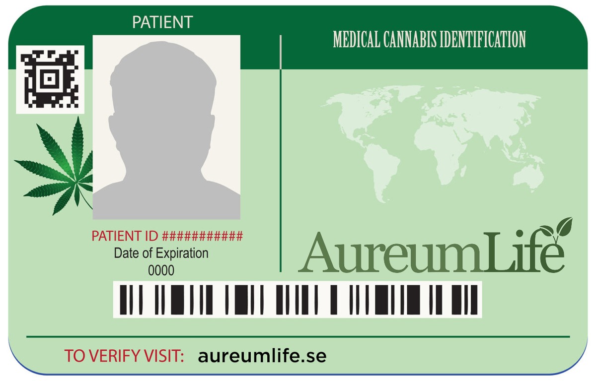- Idag kan vi erbjuda alla våra patienter så kallade ”Medical Cannabis Card” du som boende i Sverige som dokumenterat har haft behandling med medicinsk cannabis i mer än sex månader kan nu genom Aureum Healthcare ansöka om en i Sverige giltig ID handling som intygar att du har medicinsk cannabis som en del av en medicinsk behandlingsplan. Ansök här.